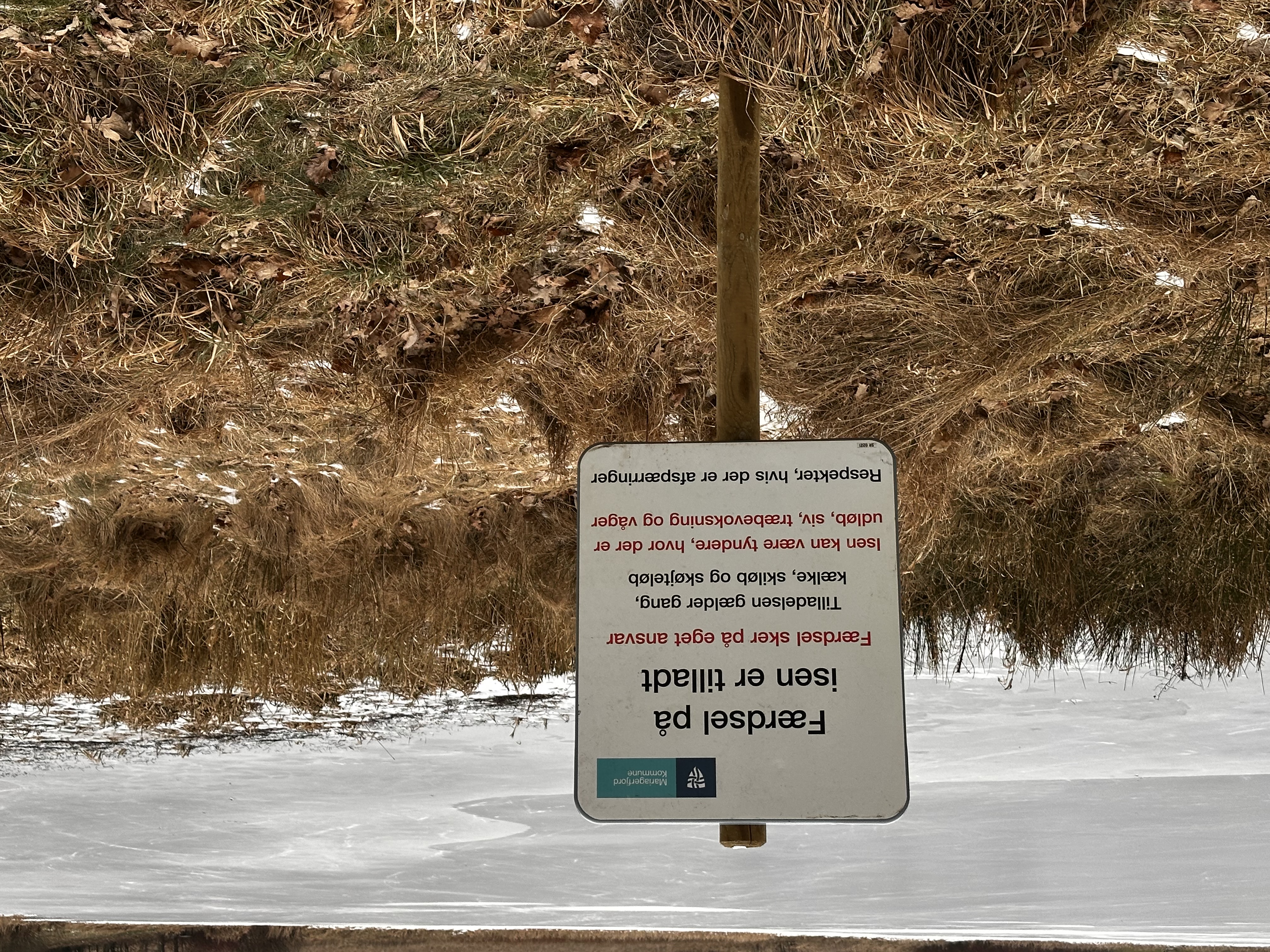 Du må kun færdes på isen, hvis skiltning viser, at det er tilladt. Færdsel på isen er altid på eget ansvar – hold øje med afmærkning og brug din sunde fornuft.