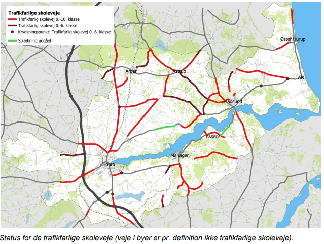 Status for de trafikfarlige skoleveje fremgår som følgende: