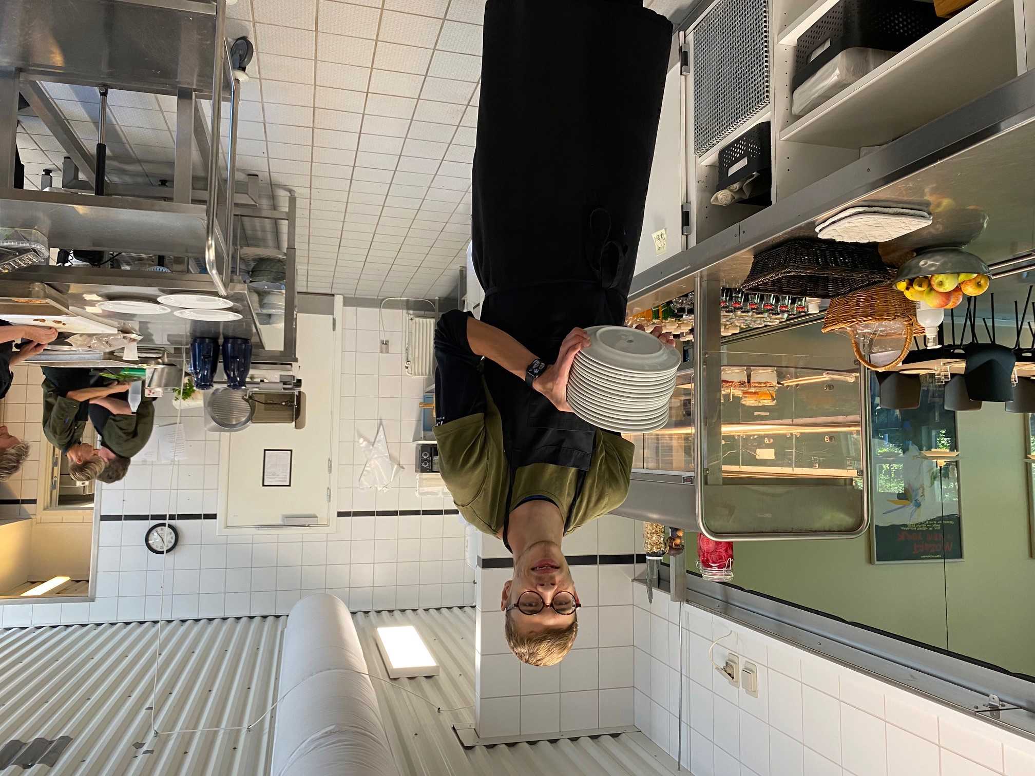I tilknytning til caféen har vi vores anretterkøkken, hvor borgerne anretter maden til os her på gården og samtidig står for at anrette, servere og servicere caféens gæster.