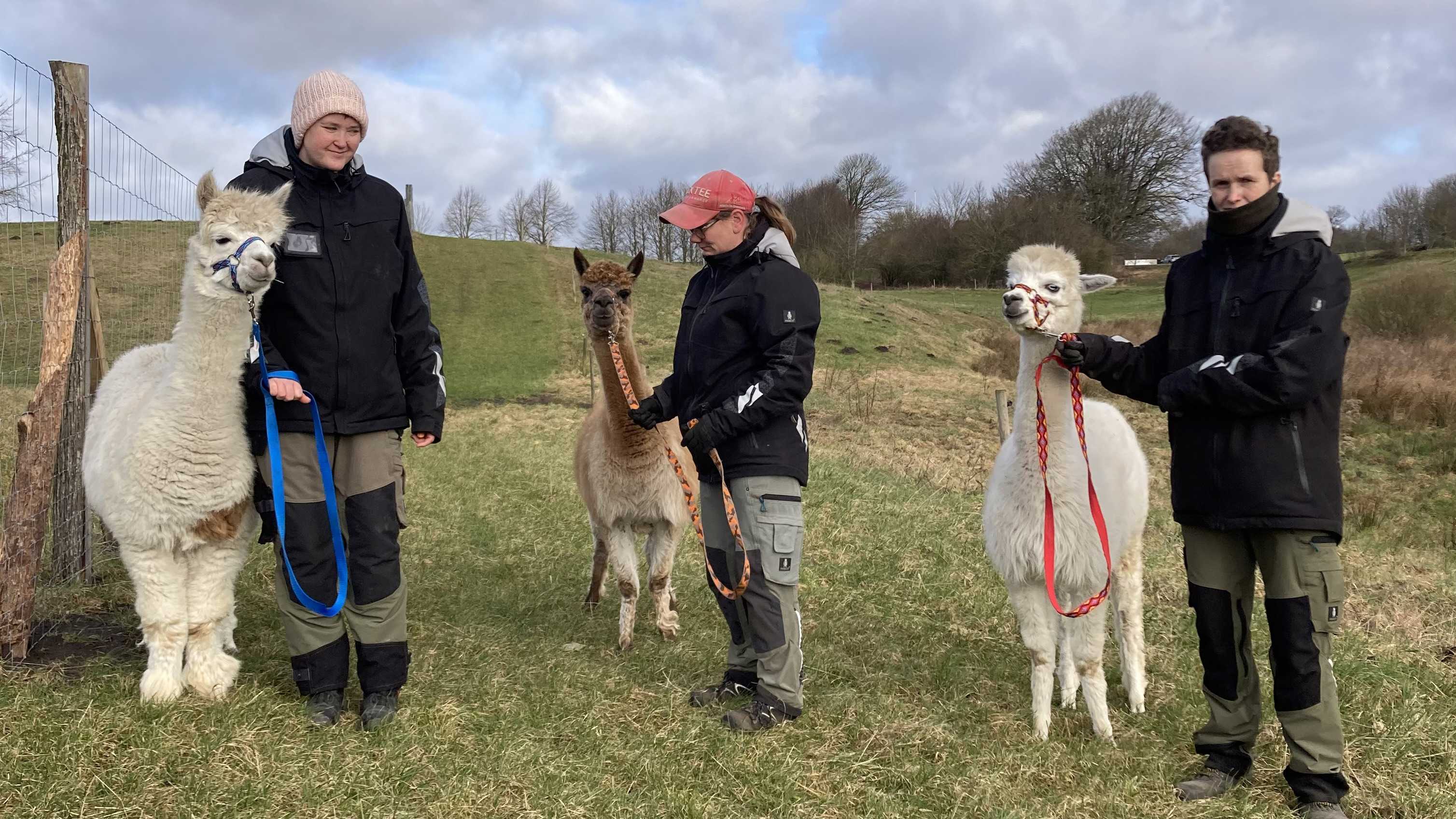 Interesserer du dig for dyr, så har vi 5 alpakaer, der skal passes og gåes ture med hver dag.